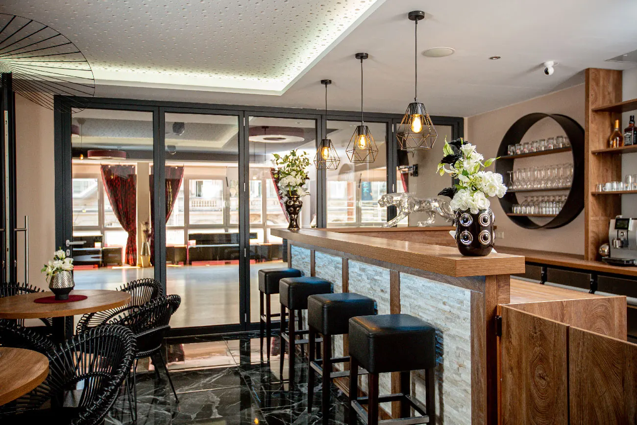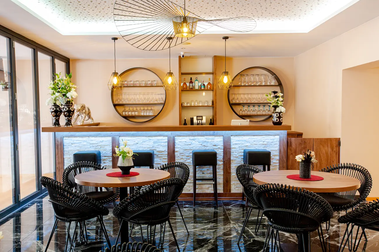 • Stilvoller Barbereich als Treffpunkt vor und nach dem Kurs