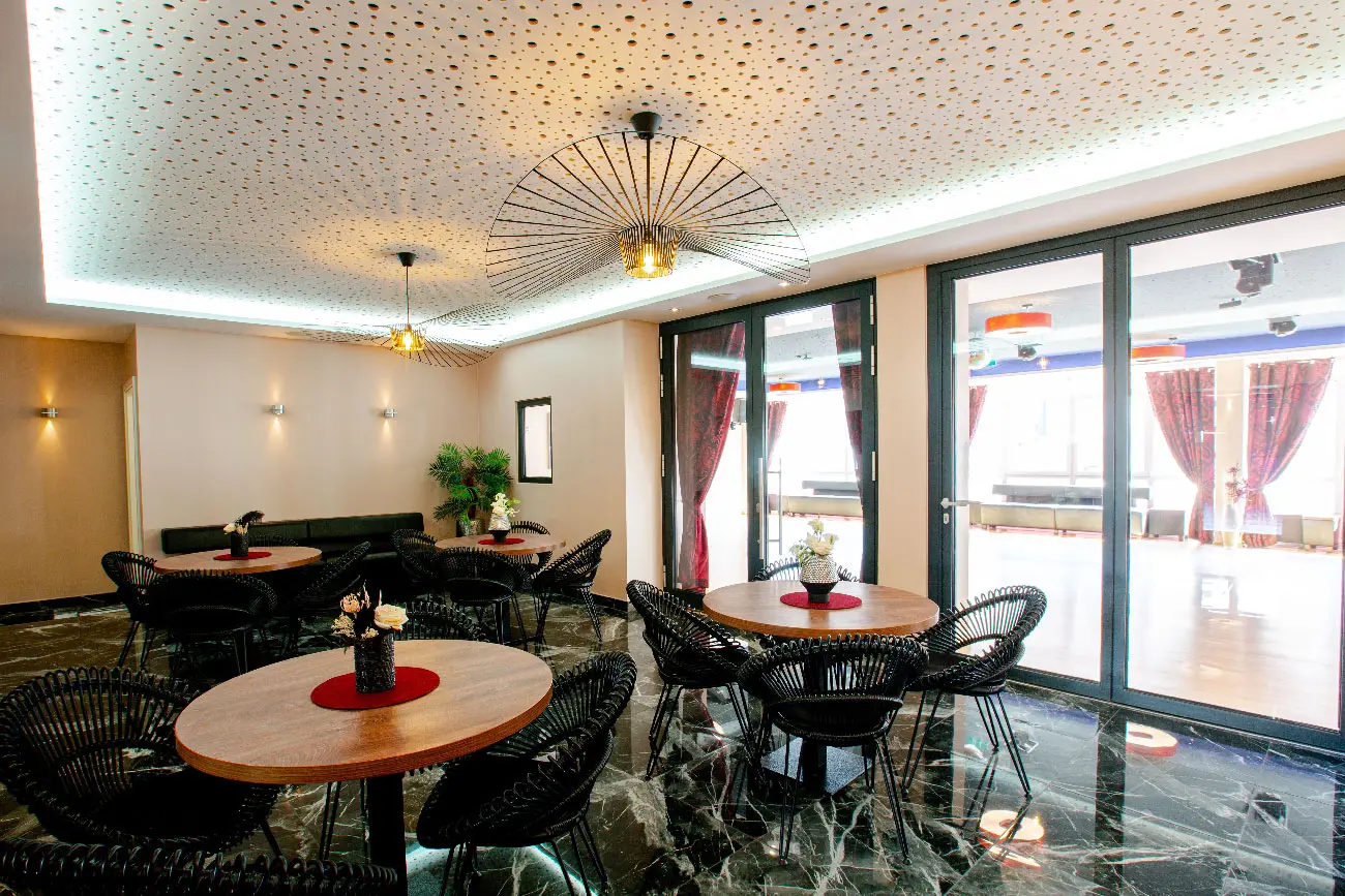 • Beide Tanzsäle sind mit der modernsten Akustik- und Lichttechnik ausgestattet und bieten zudem einen einmaligen Blick auf den lebendigen Europaplatz.